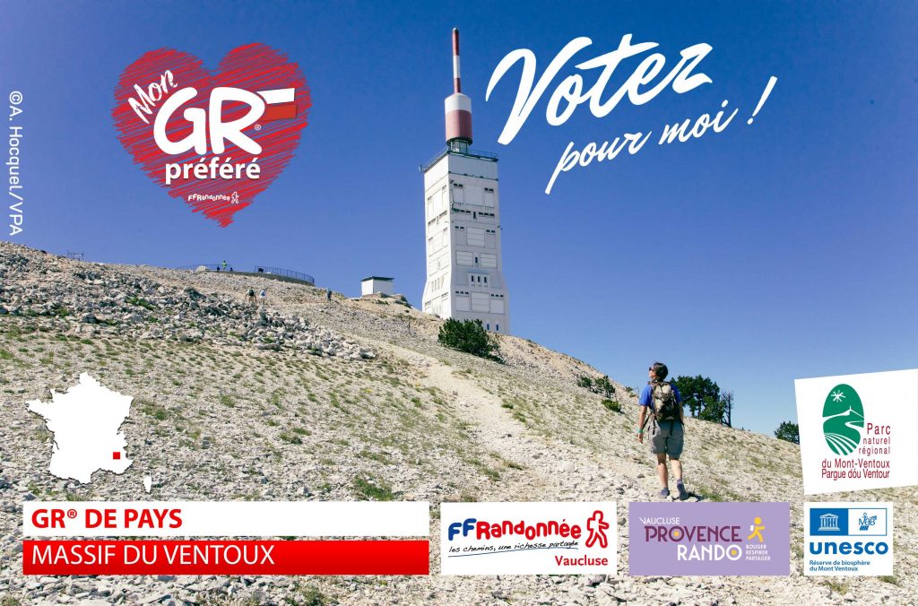 - à voter chaque jour pour le GR du Massif du Ventoux, dès aujourd’hui et jusqu’au 17 novembre, en cliquant sur le lien suivant : https://bit.ly/Mon-GR-préféré-saison5